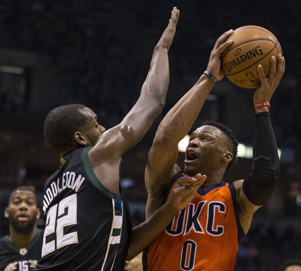 104 Oklahoma Thunder: Westbrook (15), Roberson (3), Kevin Durant (32), Ibaka (13), Adams (14) –cinciul initial- Singler (7), Kanter (18), Waiters (2) , Morrow .